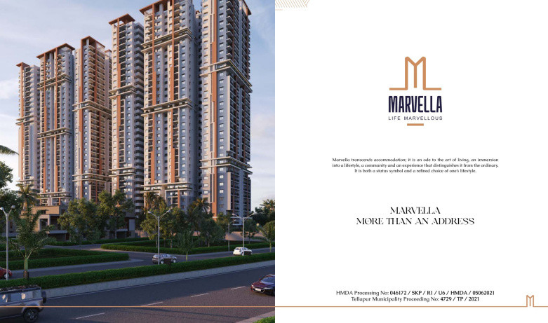 Presenting you Marvella, an ultra-modern high rise apartment right beside the picturesque lake. Discover a lavish lifestyle close to the Financial District, Gachibowli, at a price that fits your budget. Spread across 4.5 acres, this Elegant residential project is the definition of welcoming with 82% of its space reserved for green, open spaces and amenities.